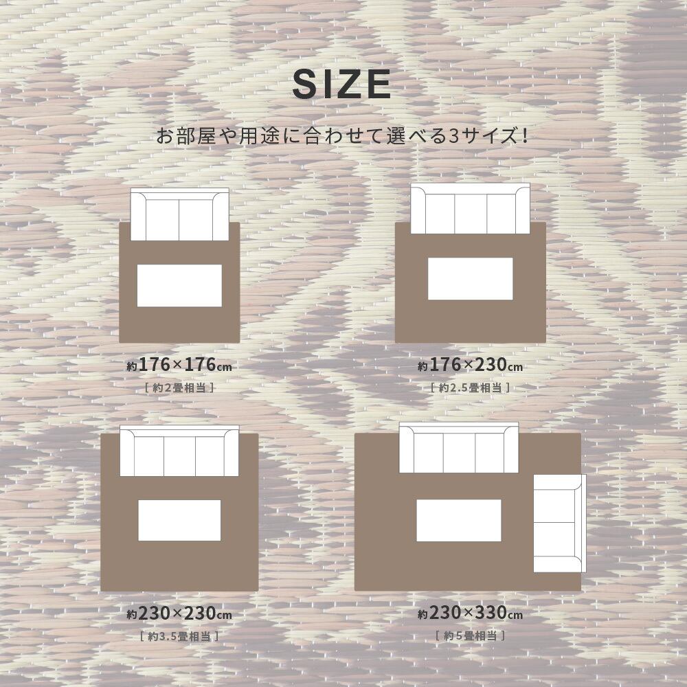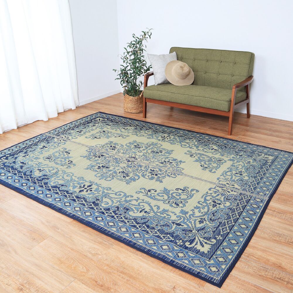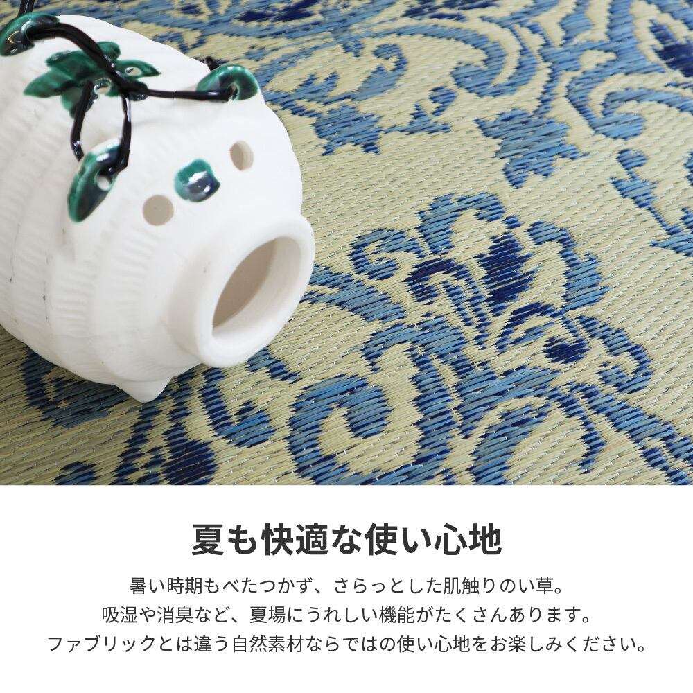 ペルシャ絨毯のような細やかな柄をデザインしたい草ラグ。お部屋をモダンに演出したい方にもおすすめです。表面は、い草の湿度調整機能でサラリと爽やかな肌触り。裏面は、不織布で床を傷つけにくくなっています。