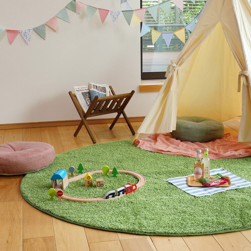 室内のお部屋にいながら、アウトドア気分を味わえる芝生風ラグ。